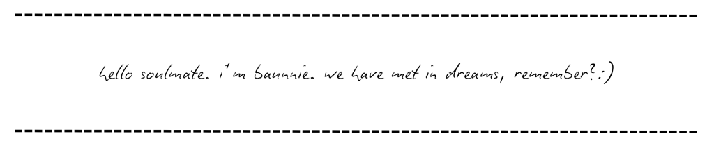 been searching across dimensions, timelines, and space for something missing from my blue planet. i was looking for love. prayed to the moon one night, didn't think my wish would have led me to you. are you real?... ...or was i chasing ghosts? your dear friend, baunnie
